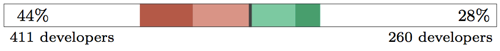 This sentiment garnered the least agreement out of all the sentiments in our validation survey — only 28% (260 developers) agreed. A whopping 44% disagreed.