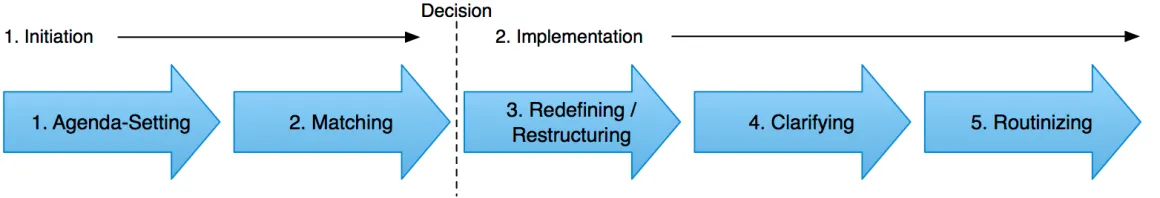 - Agenda-Setting: The organization identifies and prioritizes needs and problems that could be addressed by adopting an innovation.
