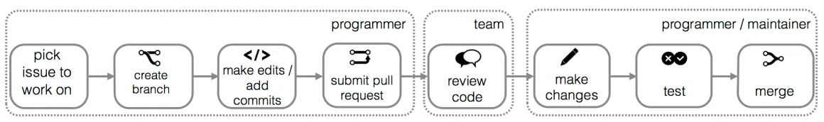 As a first insight, many study participants told us that they use a workflow with branching and pull requests. This helps keep their work independent (see Fig. 1).